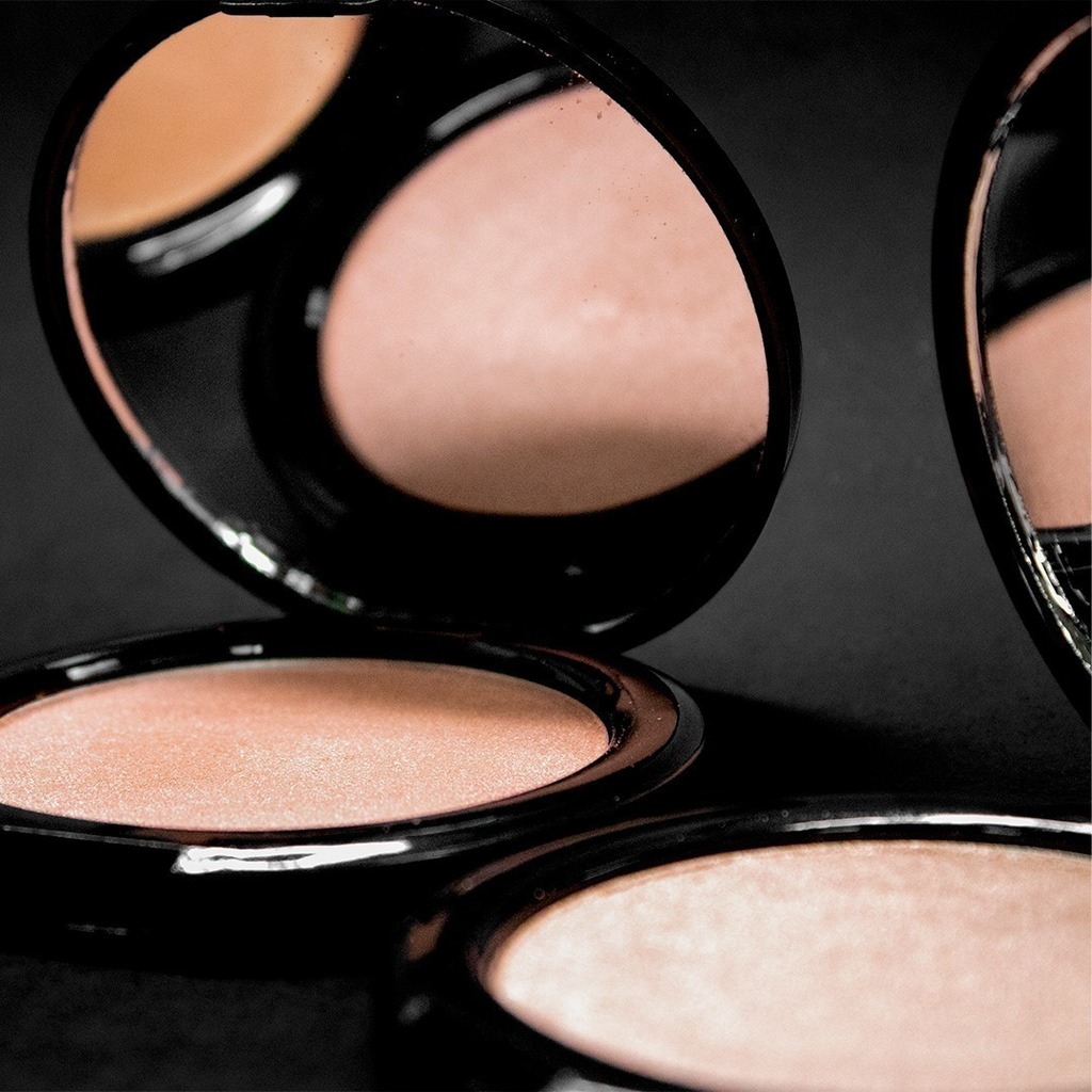 Iluminador compacto Polly’s Makeup. Cor super pigmentada e usável, toque sedoso que promove luminosidade natural a pele.