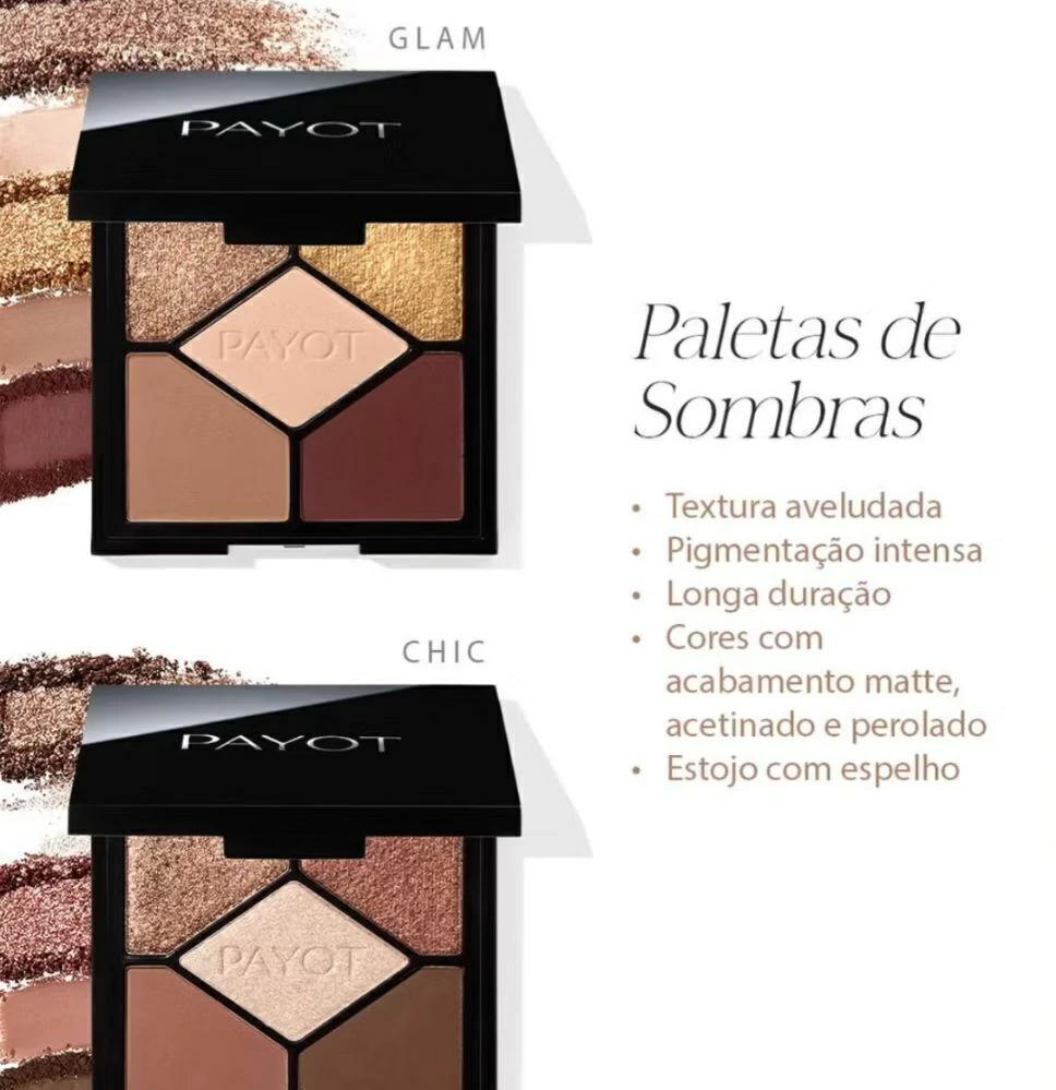 A Paleta de Sombras Payot oferece fórmulas de longa duração e pigmentação intensa, proporcionando uma experiência sofisticada de maquiagem. Com uma textura aveludada e fácil aplicação, essa paleta garante resultados impecáveis e duradouros. O estojo compacto e elegante, com espelho integrado, torna a experiência de maquiagem ainda mais conveniente e prática.
